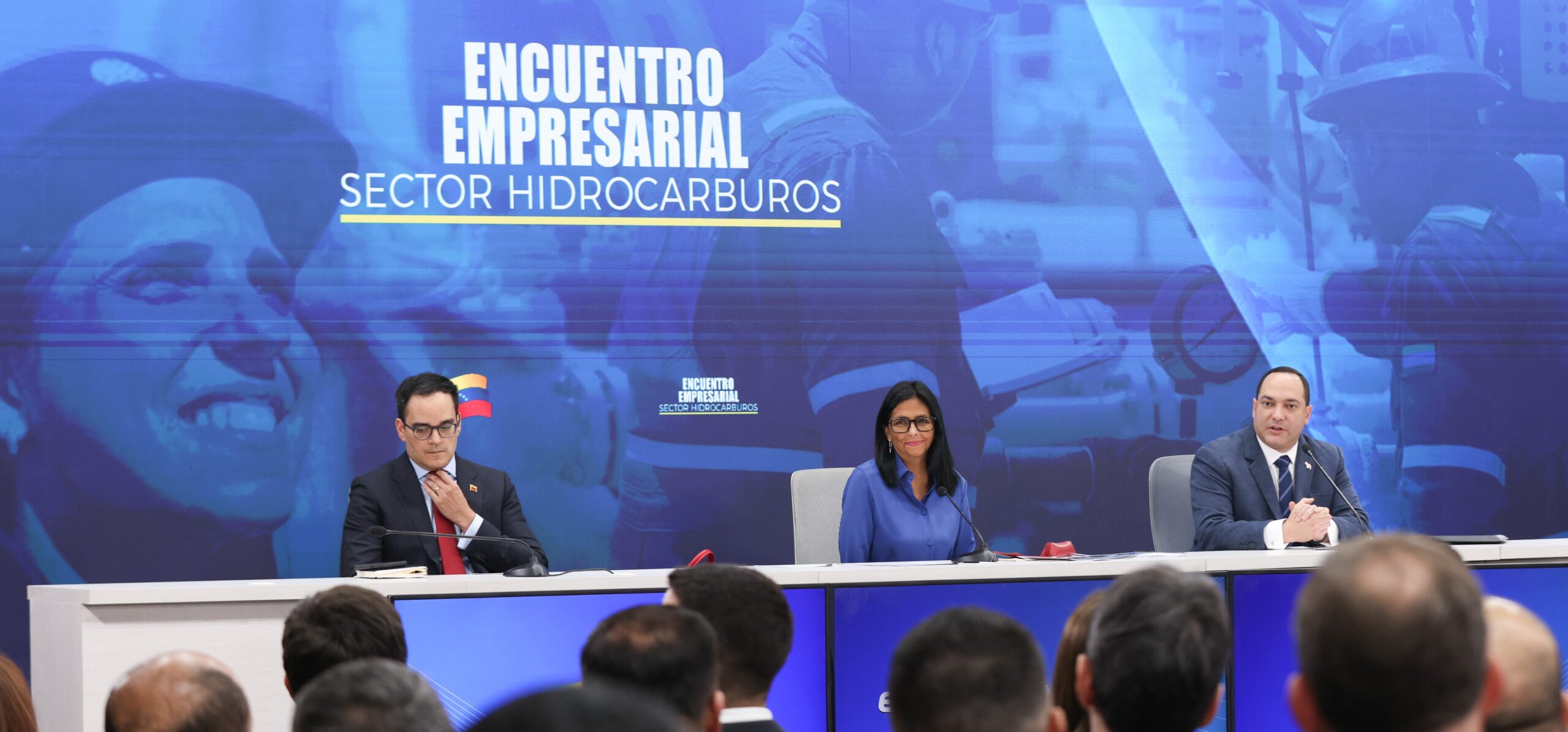 Rodríguez lideró una reunión con más de 230 empresarios del sector hidrocarburos y autoridades de Petróleos de Venezuela, S.A. (PDVSA)./Globovisión/@gobguarico