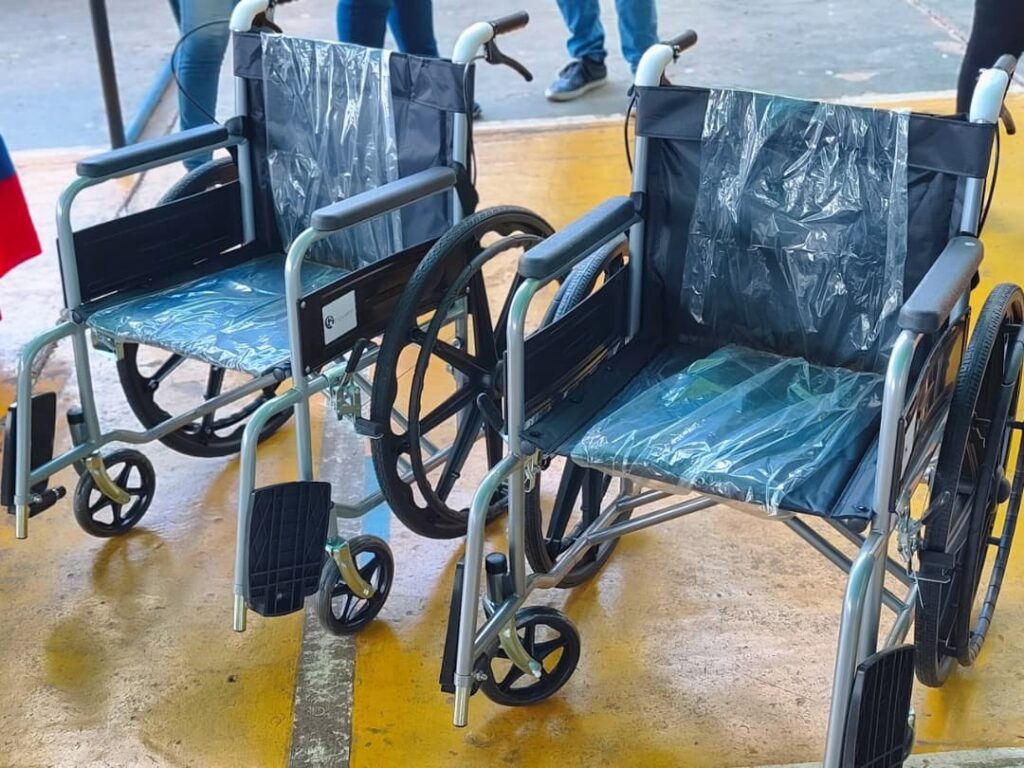 Asimismo, se otorgaron ayudas técnicas, entre ellas: 14 sillas de ruedas, 4 andaderas, 4 bastones de cuatro puntas, 1 bastón de una punta, 1 colchón antiescaras, 1 silla de baño, 1 bastón de rastreo para personas con discapacidad visual y 2 muletas.