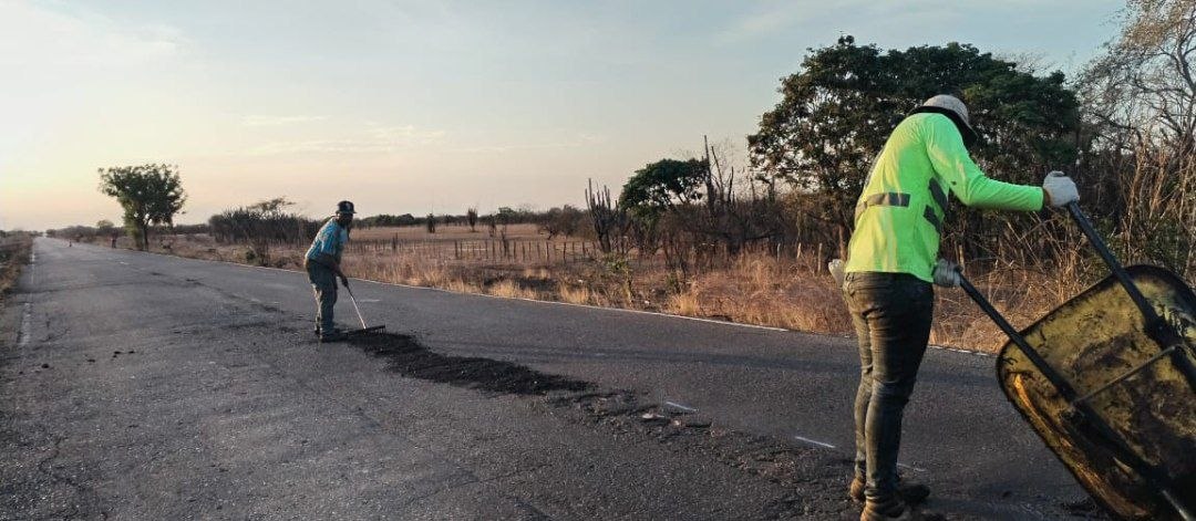 Dentro de los trabajos realizados, se están haciendo: transporte de mezcla asfáltica, saneamiento del área, riego de adherencia, suministro y colocación de 21 toneladas en tramos discontinuos y bacheo liviano.  / @GobGuárico/Sibci Guárico